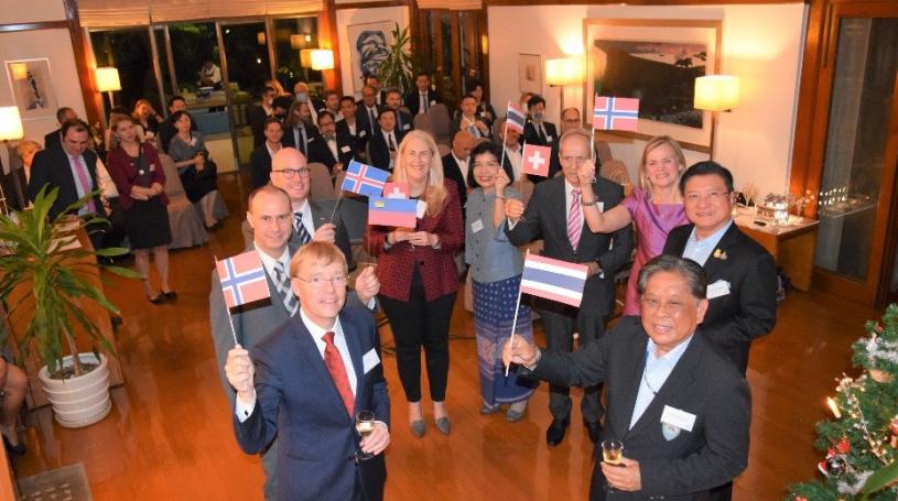 On 17 December 2020, the Thai-EFTA Business Circle was launched at the residence of the Norwegian Ambassador in cooperation with the Swiss Embassy, the Norwegian-Thai Chamber of Commerce and the Swiss-Thai Chamber of Commerce. The Business Circle and the active participation of the companies represented in it will play an important role in the upcoming Free Trade Agreement (FTA) negotiations between Thailand and the EFTA countries.